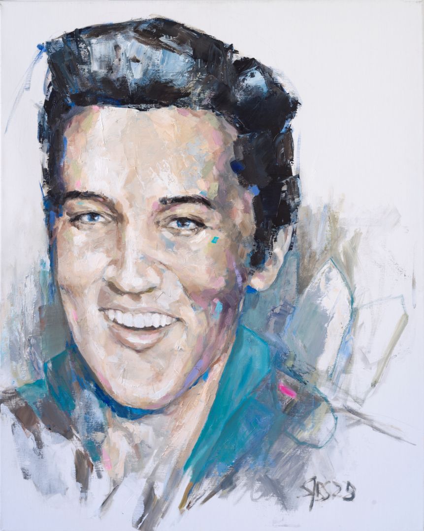 I am pleased about your interest in my artwork which was created as a tribute to Elvis Presley.